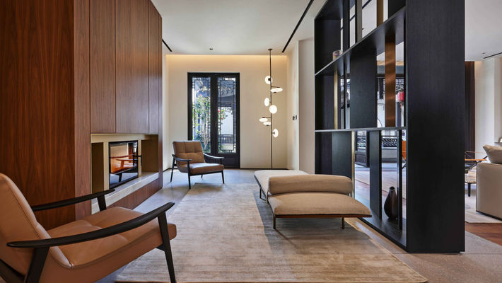 Two traditional Chinese courtyard villas connected trought a basement, where the inner and exterior space are deeply connected one to the others through the continuity of the materials and the transparency of the surfaces.
